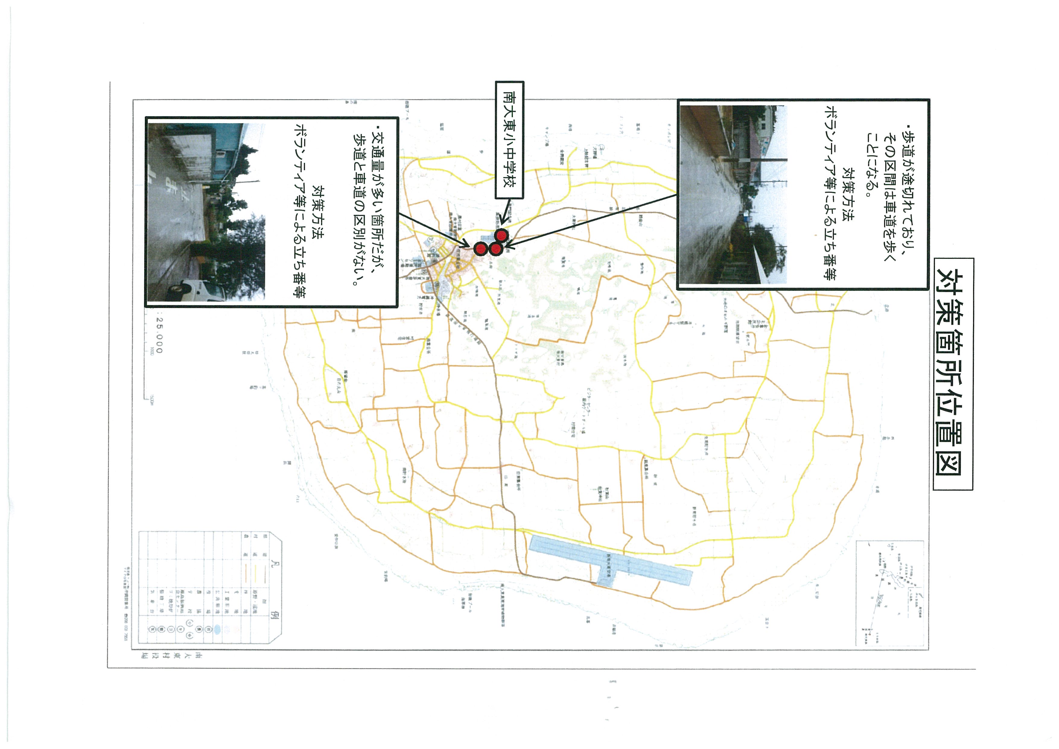 | 箇所名・住所 | 南大東小中学校、正門近くの歩道 | 奥山組前の三叉路 |