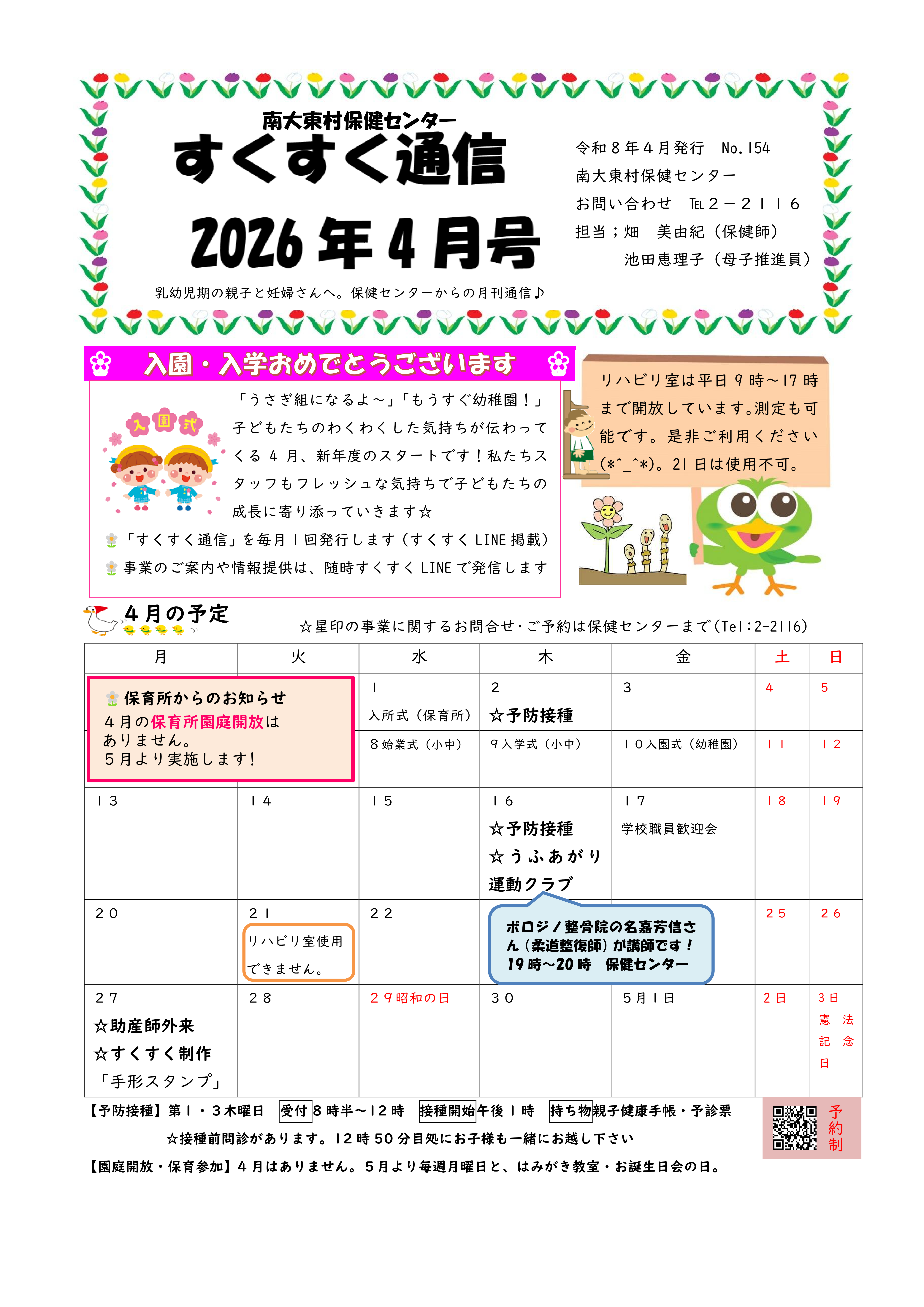 ☆定期予防接種 4月2日(木曜日)・4月16日(木曜日) ※予約制