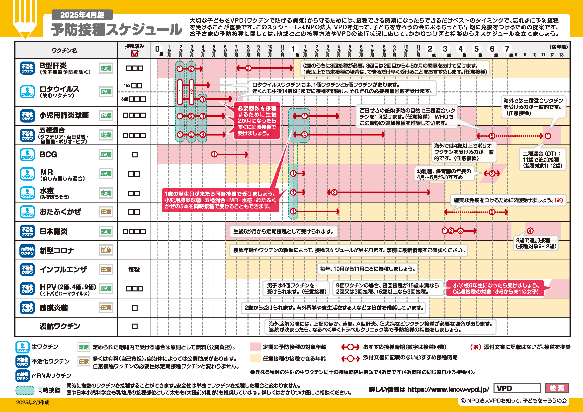 ・事前に親子健康手帳で今回受ける予防接種と対象年齢、接種間隔を必ずご確認下さい。